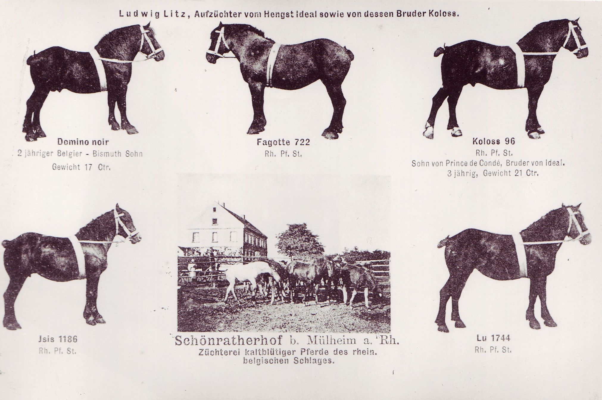 Werbekarte von Ludwig Litz für Hengste, die auf Schönrath gezüchtet wurden. Sammlung Dr. Wilfried Litz, Köln, mit freundlicher Genehmigung von Dr. Wilfried Litz
