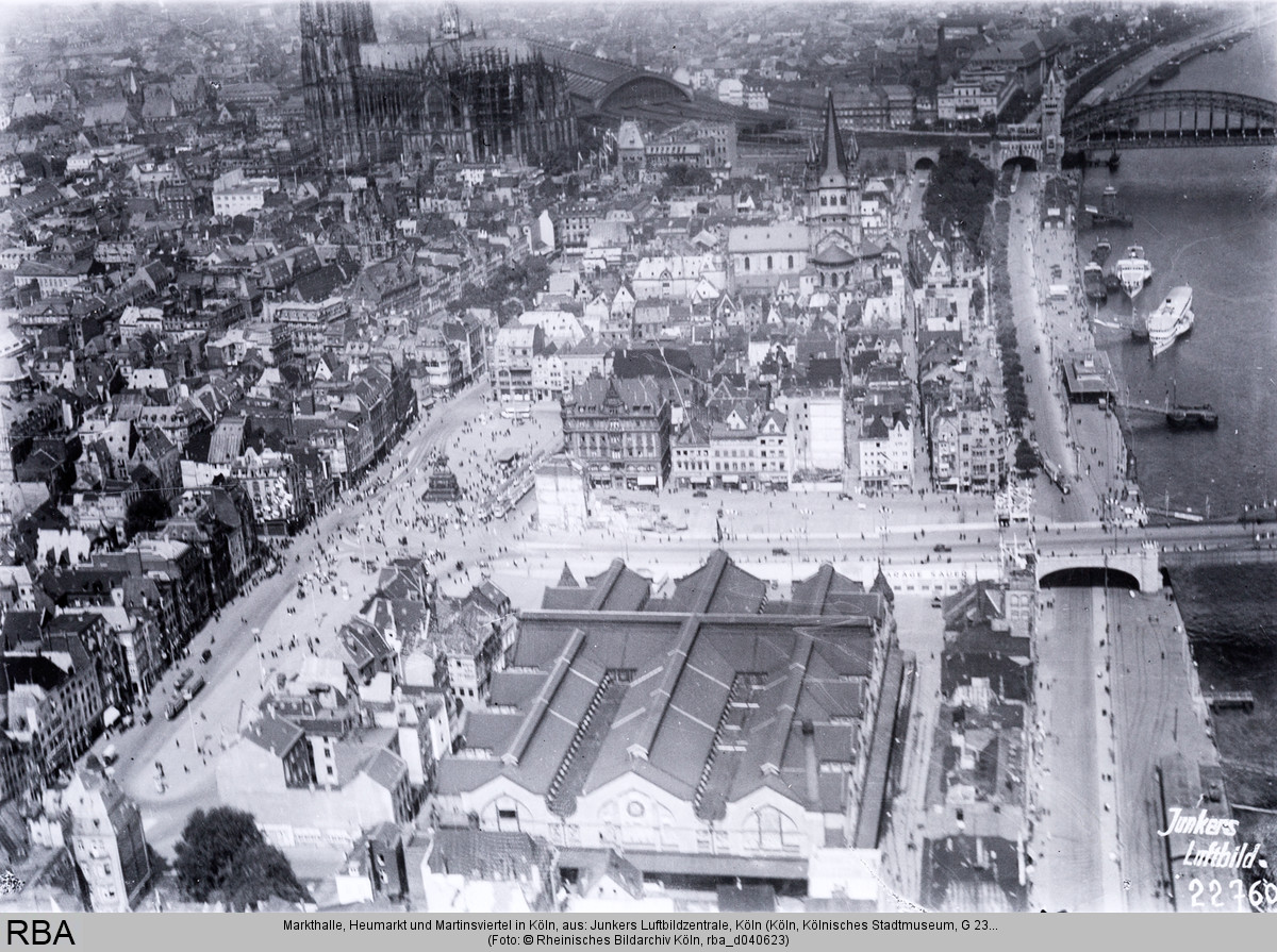 Markthalle, Heumarkt und Martinsviertel in Köln, aus: Junkers Luftbildzentrale, 1928