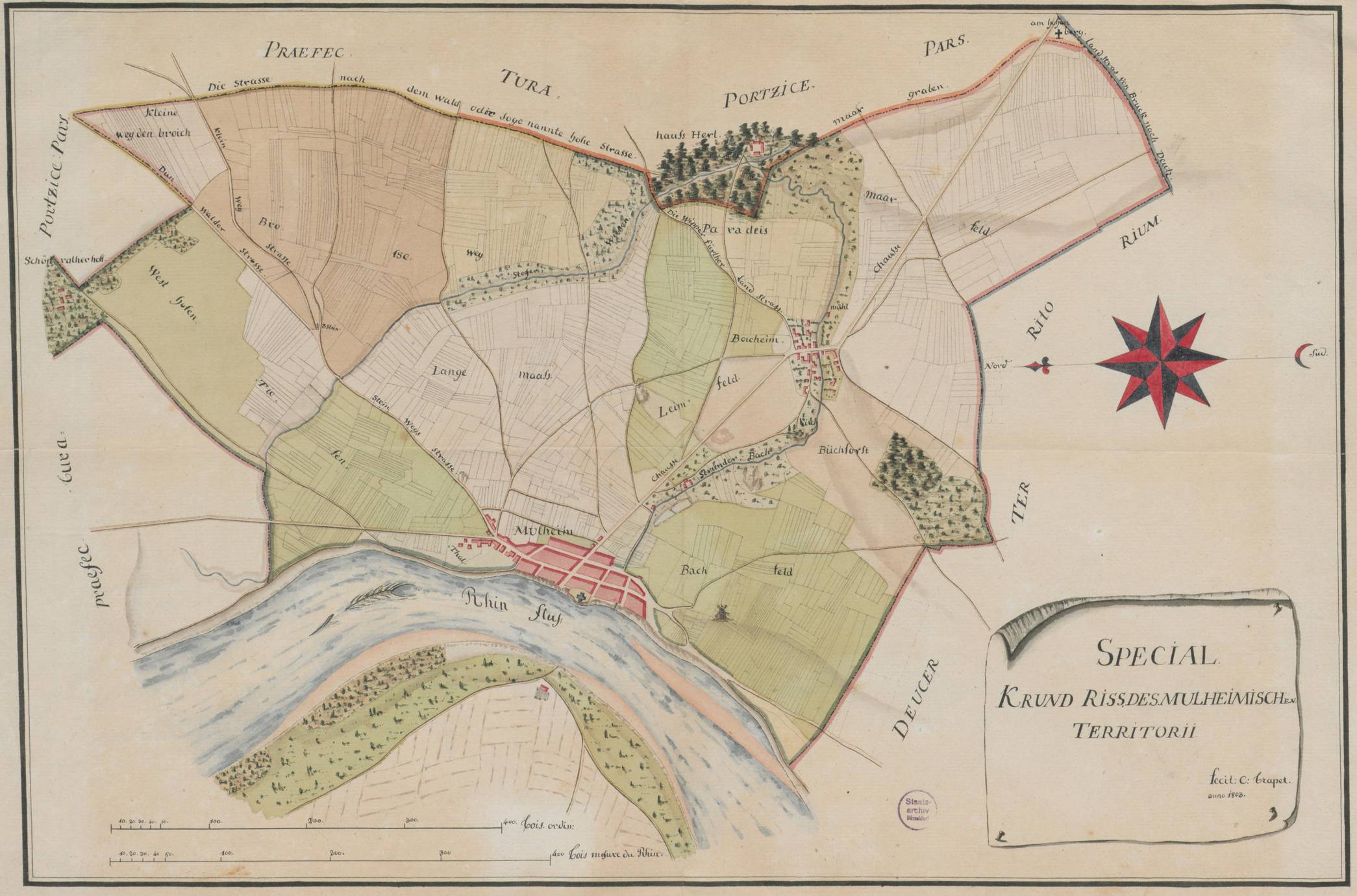 LAV R, RW Karten 01734_DinA2_r. Mülheimer Territorium mit Weidenbruch, 1803 farbig, erstellt von Crapet