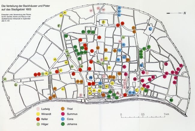Die Aufzeichnungen im Jahr 1603 ermöglichen auch eine Auflistung der 116 Backhäuser und Pister in der Stadt, die die damals ca. 45.000 Bewohner versorgten.