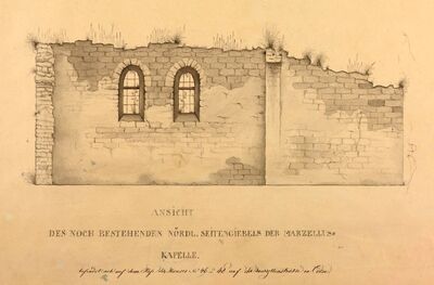 Mauerreste der alten Marcellus-Kapelle auf dem Hofe der Häuser Marzellenstraße 46 und 48, 1847