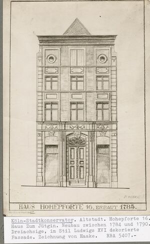 Haus "Zum Jütgin". Neubau zwischen 1784 und 1790, Zeichnung von 1926