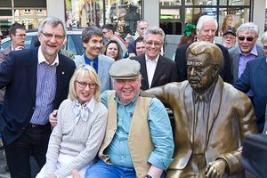 Ein Denkmal steht auf dem Willy-Millowitsch-Platz.
