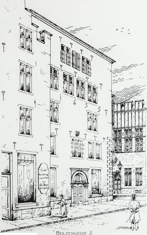 Das namengebende Haus "Zum Bolzen" wurde 1539 abgerissen, um die neue Straßenverbindung zwischen Gürzenich und dem Heumarkt zu bauen. 1566 wurde an der neuen Bolzengasse das erste Börsengebäude errichtet.
