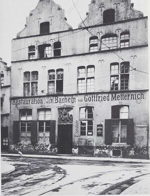 Das Haus "Zum großen Bachem" oder "Haus Bachem" an der Ecke zur Bachemstraße, die erst 1845 angelegt wurde. Es wurde 1590 von einem Peter von Krastein erbaut.