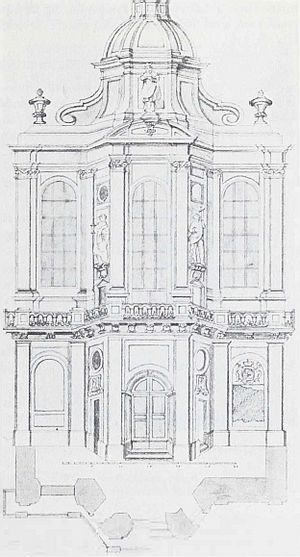 Die Kirche bestand aus zwei untereinander verbundenen Kuppelräumen. Der untere enthielt den Hochaltar, der obere die Kanzel und in einer Rundnische den steinernen Sessel (cathedra) des Erzbischofs.