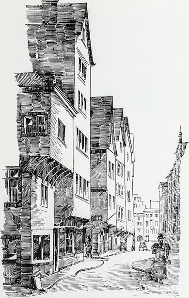 Eine kleine Gasse vom Eingang zur Fleischhalle im Heumarkt bis zum Seidmachergäßgen am Nordwestende,, mit eigenen Hausnummern 1 - 37 usw. Früherer Name war auch Unter Gaddemen, wo der Tuchverkauf stattfand.