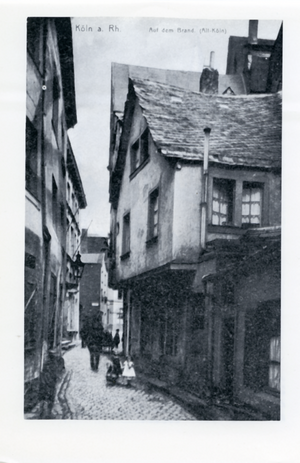 Die heutige Gasse >Auf dem Brand< erinnert an eine Feuersbrunst in der zweiten Hälfte des 16. Jahrhunderts. Sie war ehemals die Gasse der Schorlaker oder Schoren und des Webstoffgewerbes. In den Schreinsurkunden von 1197 wird aber auch ein Haus Hildebrandi panificis erwähnt.