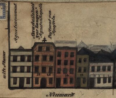 Das Hospital St. Agnes ("Agnetenkonvent") ist zu finden in der Kreuterkarte K 337-66 - Neumarkt (nördlich)