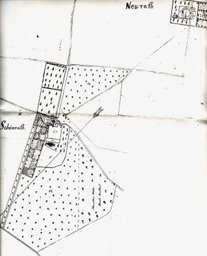 Zur Darstellung der zwei "Schönrather Höfe" um 1800 und der unterschiedlicher Interpretation → Hauptartikel Schönrath auf den Karten von Wiebeking und anderen um 1800.