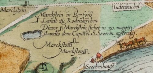 Im Schweid-Plan ist der Burgbannbereich vor den Toren Kölns durch 28 Marksteine klar abgegrenzt.