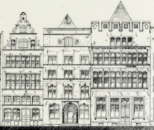 Das Haus wird zuerst 1316 erwähnt, 1488 wurde es "Zum Helm" genannt, seine jetzige Gestalt erhielt es 1541 "Sternenberg"; seit 1847 Weinrestaurant u. Gasthof Vanderstein & Bellen. Bei einem Luftangriff am 31. Mai 1942 brannte das Haus aus und stürzte ein. Links das Haus zum zum kleinen und zum großen Bär. Hinter dieser Häuserzeile steht heute das Hotel Maritim.