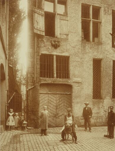 Auf dem Himmelreich, Ecke Paradiesgässchen, Hinterhaus von Heumarkt 14, Juli 1900