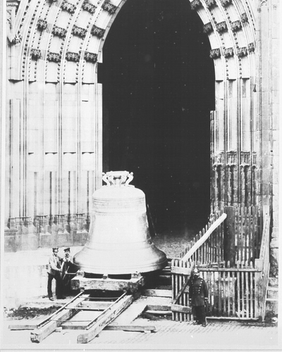 Die Kaiserglocke vor dem westlichen Hauptportal 1875 (Kölnisches Stadtmuseum, Rheinisches Bildarchiv )